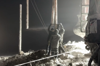 Видео установки второй опоры ЛЭП с помощью вертолета в Мурманской области