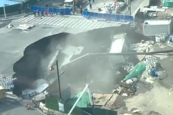 В Шанхае на дороге образовался огромный провал