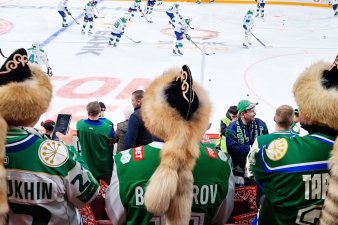 Атмосфера в Екатеринбурге перед началом матча плей-офф КХЛ "Автомобилист" - "Салават Юлаев"