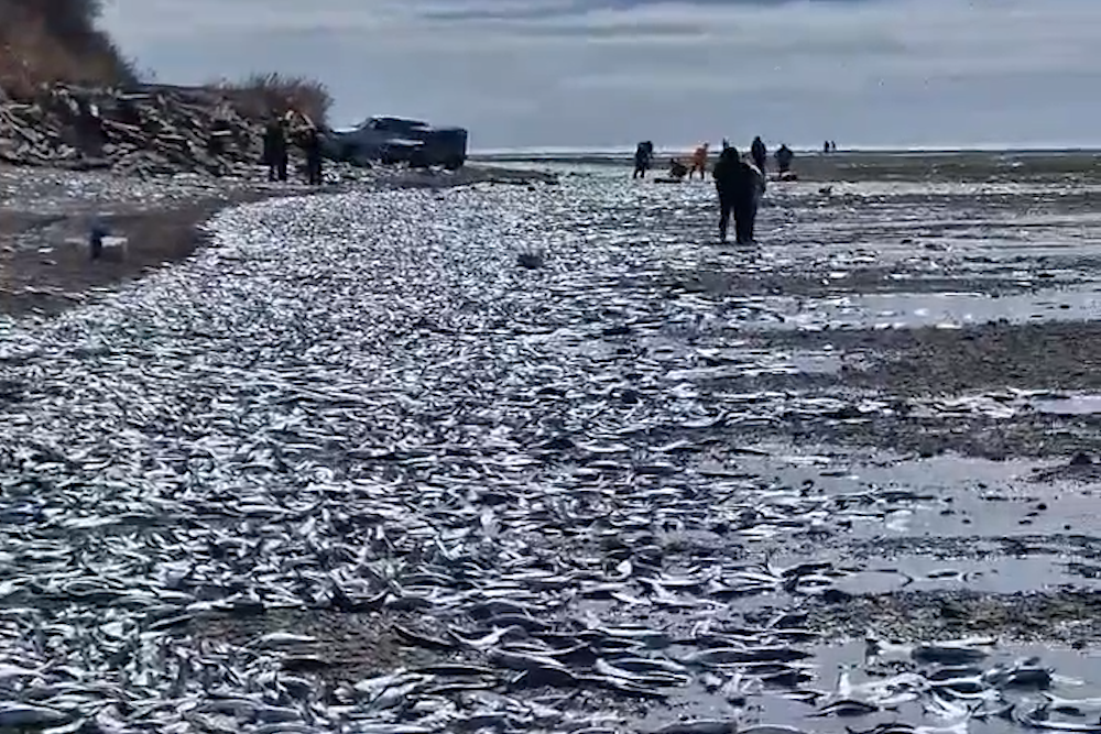 На Сахалине море выбросило на берег огромное количество сельди