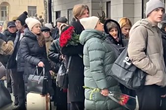 Люди с цветами выстраиваются в очереди, чтобы проводить Веру Алентову в последний путь