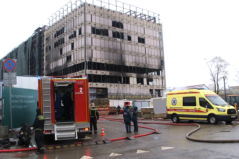 Городские службы и медики работают месте крупного пожара на севере Москвы