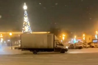 Лихач на "Газели" устроил предновогодний дрифт вокруг елки на Привокзальной площади в Пушкине