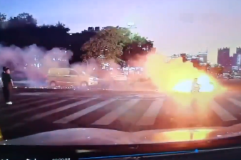 Электровелосипед китайского курьера взорвался прямо во время работы