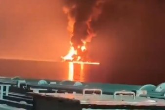Кадры горящего у берегов ОАЭ американского танкера появились в соцсетях