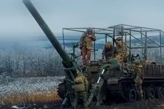 Работа тяжелых самоходных минометов "Тюльпан"