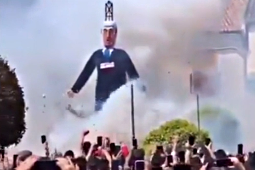 В Испании по случаю Пасхи взорвали семиметровое чучело Нетаньяху