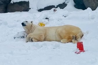 Белый медведь Терпей из Московского зоопарка показал, как надо отдыхать в новогодние праздники