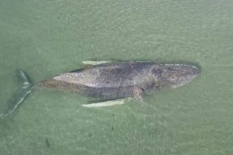 Горбатый кит застрял на песчаной отмели в Балтийском море