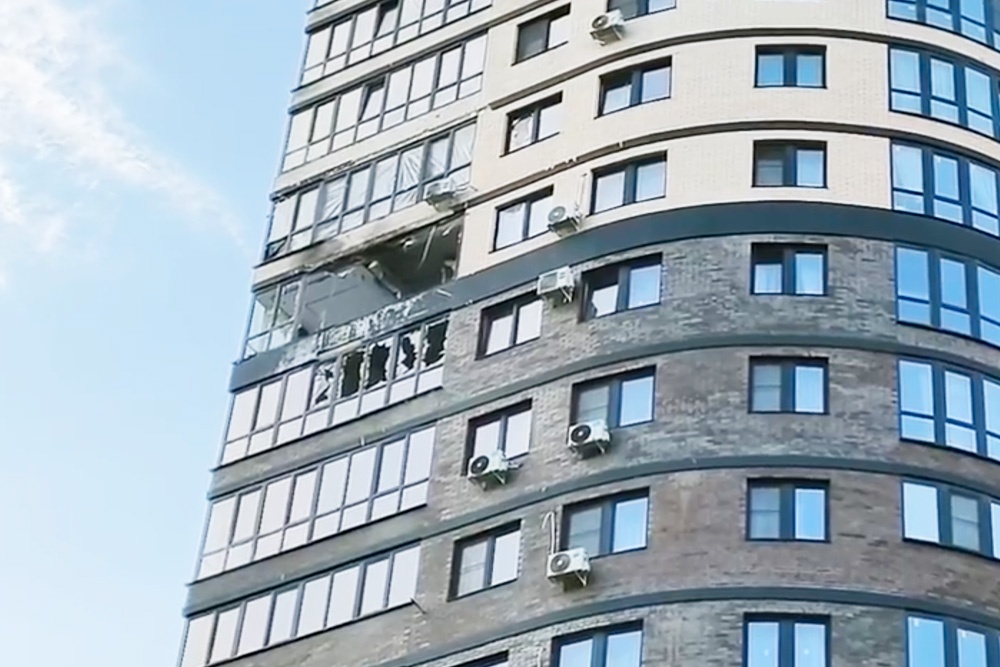Последствия удара беспилотника по многоэтажному дому в Краснодаре
