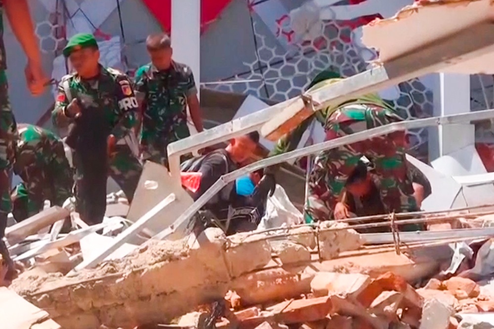 Спасатели работают на местах разрушений после землетрясения в Индонезии