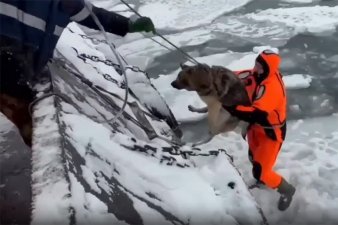 Камчатские спасатели выловили собак, дрейфовавших на льдине