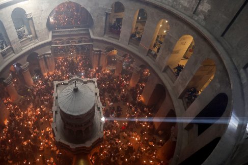 Благодатный огонь сошел в храме Гроба Господня в Иерусалиме