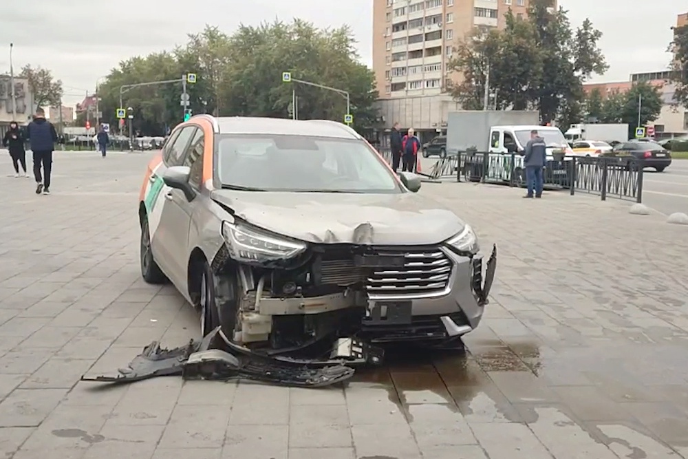 В Подольске автомобиль каршеринга вылетел на пешеходную зону