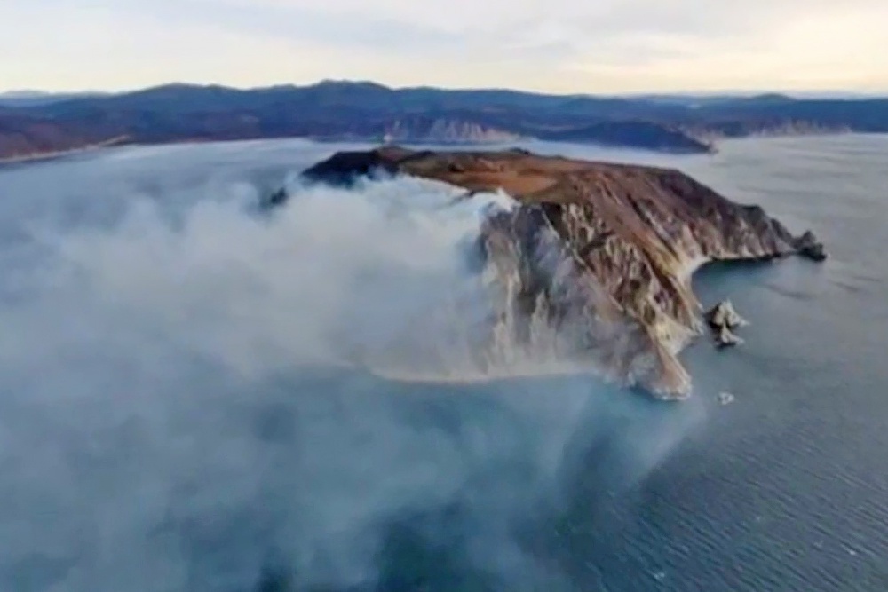 Охваченный пожаром остров Недоразумения сняли с высоты птичьего полета