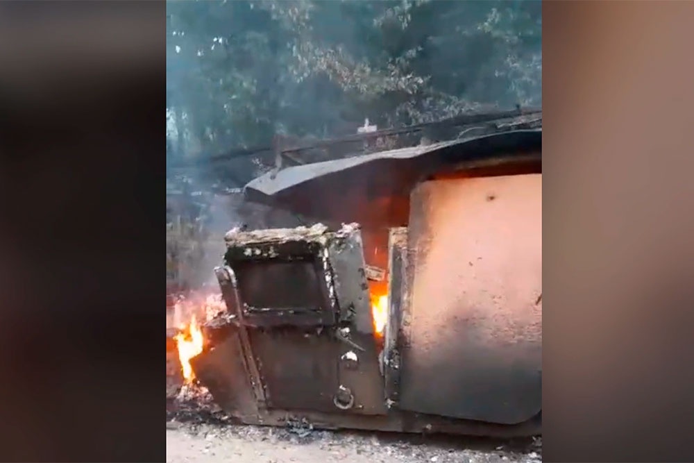 Боевики ВСУ сбежали с позиций без оружия, бросив горящий броневик BATT UMG