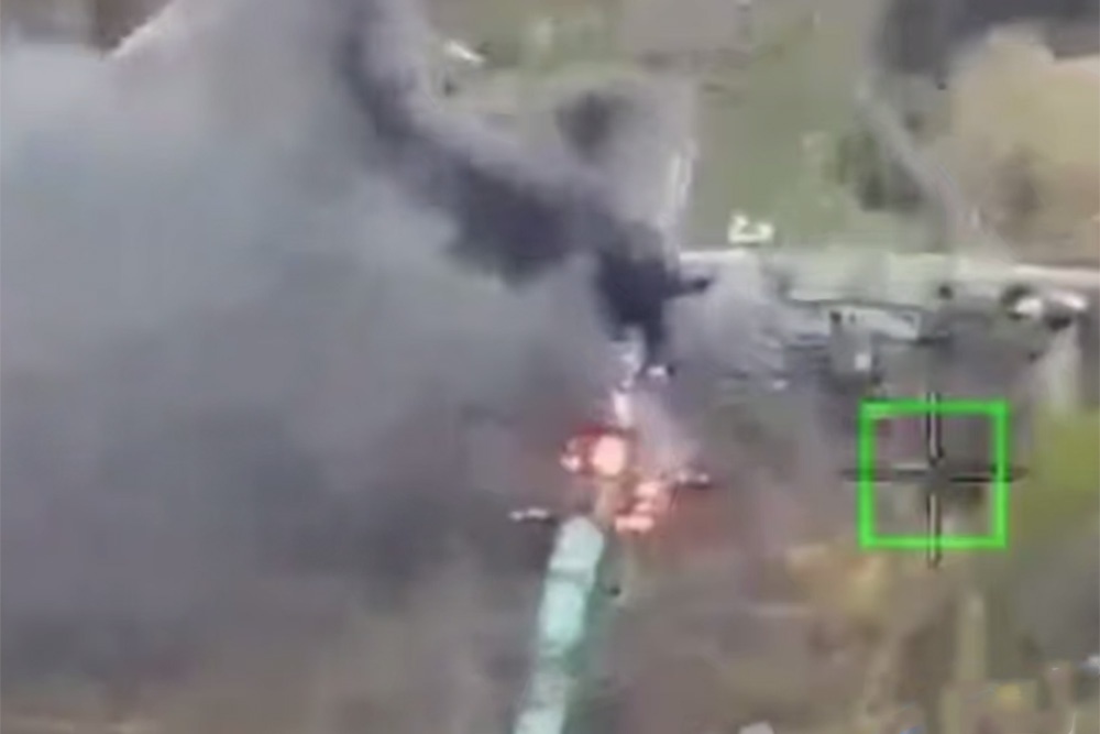 "Герани" поразили поезд с техникой ВСУ, горящий состав сняли на видео