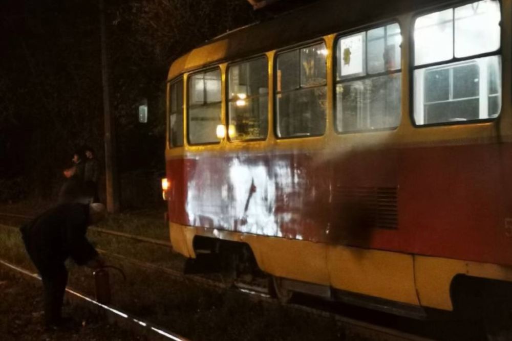 В Киеве из-за проблем со светом горят трамваи, их сняли на видео
