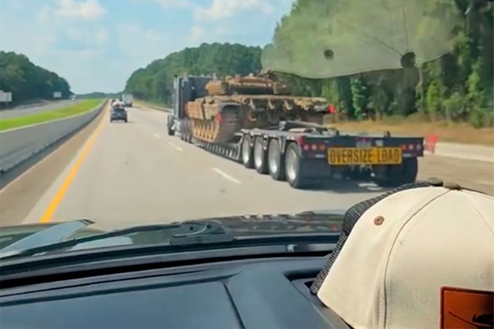 Советский танк Т-72Б замечен на одной из автомобильных магистралей США
