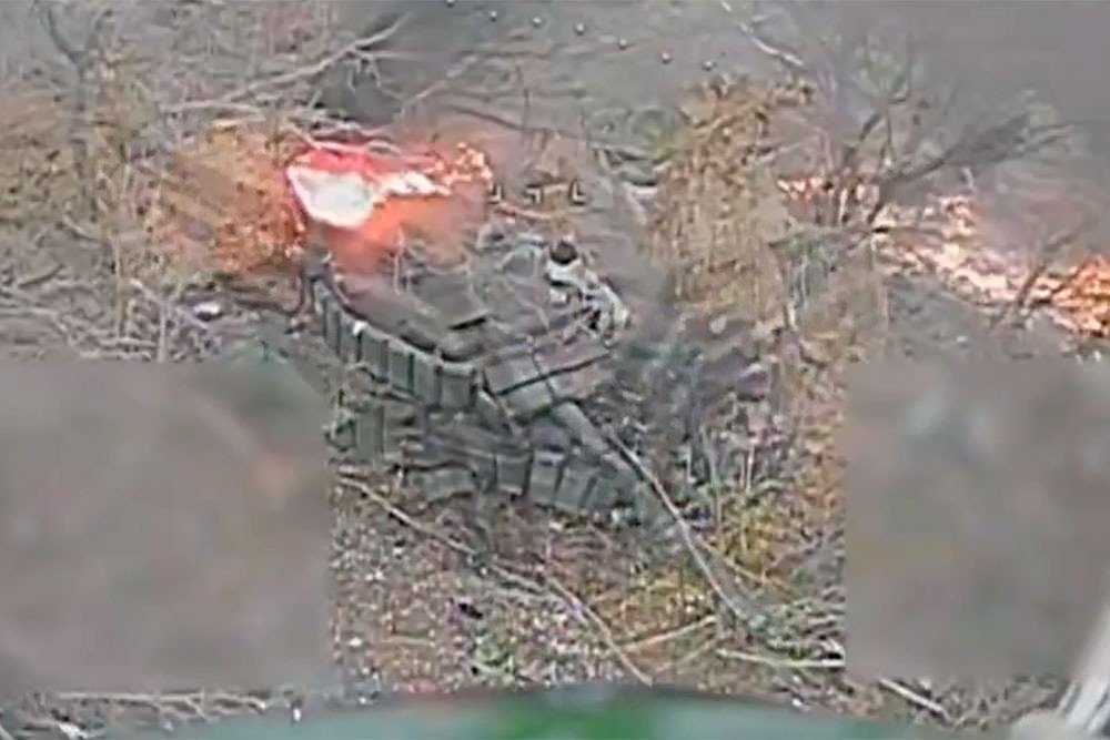 При освобождении Платоновки российский танк выдержал более 40 попаданий дронов