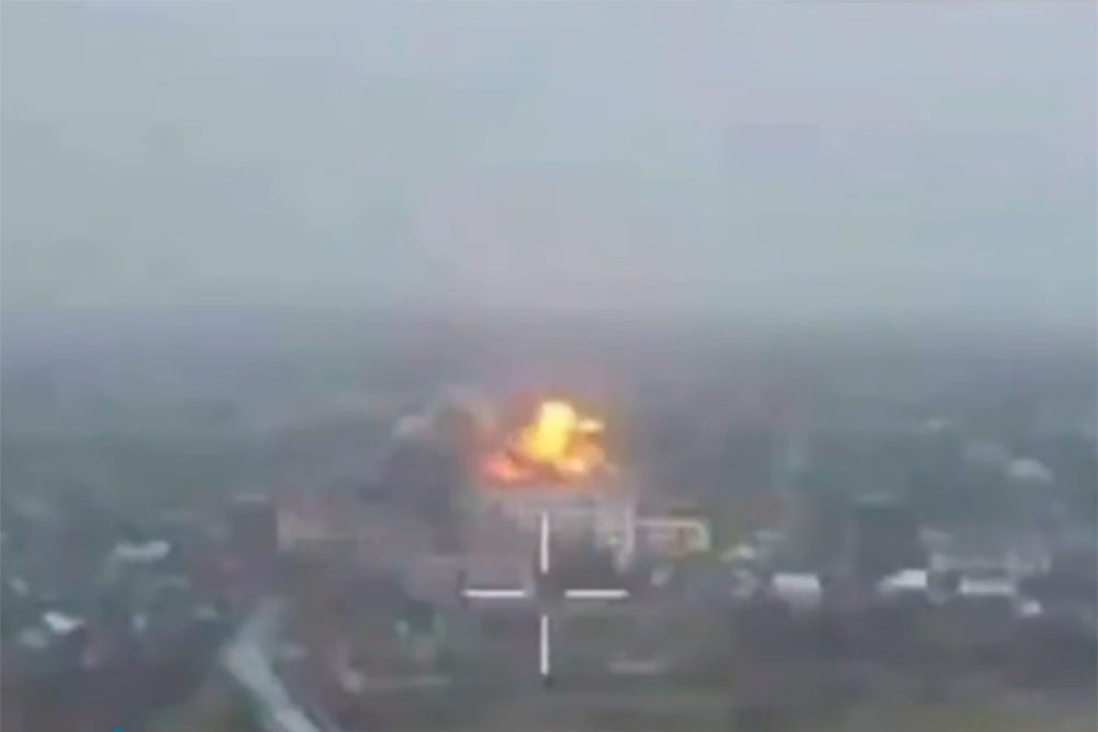 Дрон снял очередь из ФАБ-500, прилетевшую в штурмовой полк ВСУ