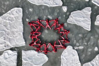 Зрелищное видео заплыва пловцов в гидрокостюмах среди льдин Японского моря