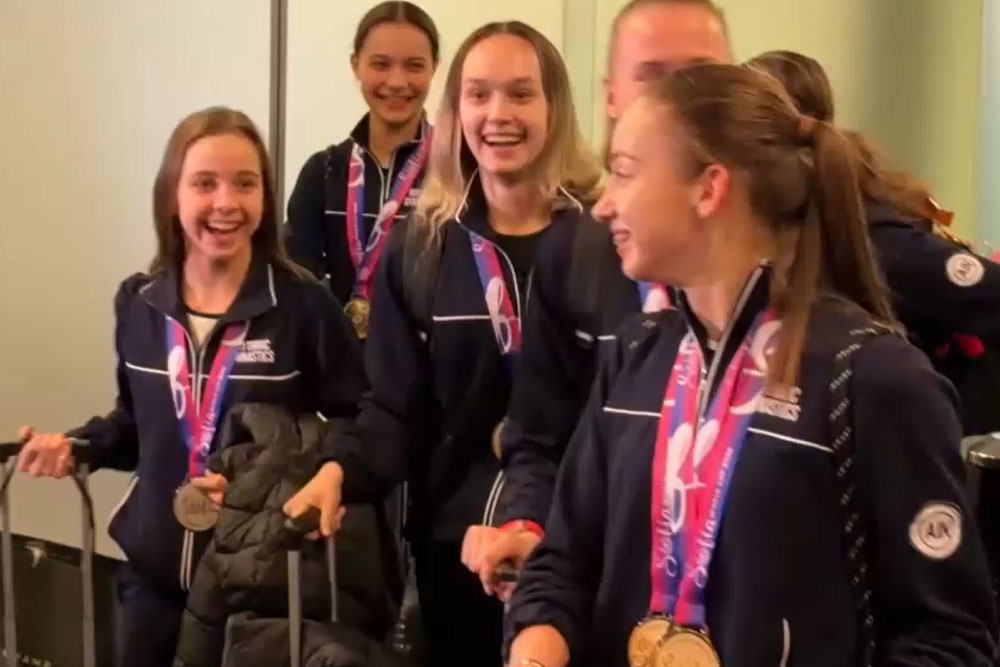 Российских гимнасток бурными овациями встретили в аэропорту Внуково
