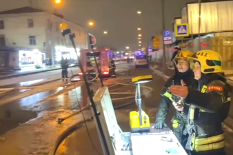 Кадры работы МЧС с места пожара на Рижском рынке