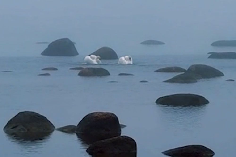 Редкие кадры брачного танца лебедей запечатлели в Финском заливе