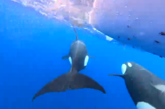 Косатки окружили лодку со спортсменками во время заплыва в Атлантике