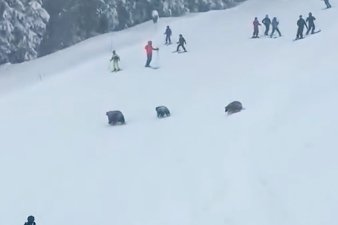 Медведи пересекли оживленную горнолыжную трассу в Калифорнии