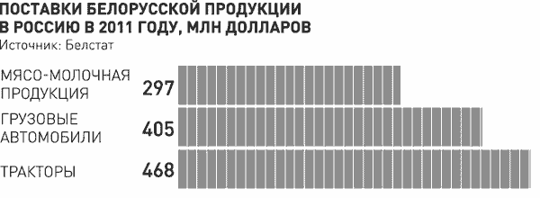 Косвенно это содействовало росту производства и на Ярославском ОАО "Автодизель" в России, поставки моторов с которого в Минск существенно увеличились. Без малого на 300 миллионов долларов возрос экспорт белорусских мясных и молочных продуктов.