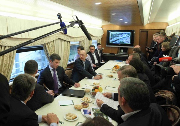 До конечной станции "Красная Поляна" на скоростном электропоезде "Ласточка" всего полчаса пути. Президент ехал на обычном рельсовом автобусе, поэтому дорога заняла около полутора часов. Владимир Путин решил не терять их и провести совещание прямо на ходу, в купе, тем более что все нужные для этого чиновники оказались рядом. Пригласили и председателя Координационной комиссии МОК Жан-Клода Килли.