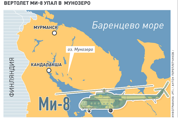 По информации Главного управления МЧС России по Мурманской области, вертолет вылетел в субботу в 15.00 из Мурманска в район реки Варзуга, где совершил промежуточную посадку на рыболовецкой базе "Пятка" и взял на борт еще нескольких пассажиров. Затем около 20.00 он продолжил полет в направлении Мунозера, где должен был приземлиться на базе отдыха компании "Апатит". Однако добраться туда ему было не суждено: вертолет рухнул на воду в труднодоступном районе озера. Двух пострадавших удалось спасти. Выжили заместитель генерального директора по региональному развитию Санкт-Петербургского института лесного хозяйства Александр Степченко, который получил открытый перелом левой ноги, и главный врач санатория "Гирвас" Валерий Купцов, у которого диагностирован закрытый перелом правой ноги. Пострадавших было решено транспортировать в Мурманскую областную клиническую больницу.