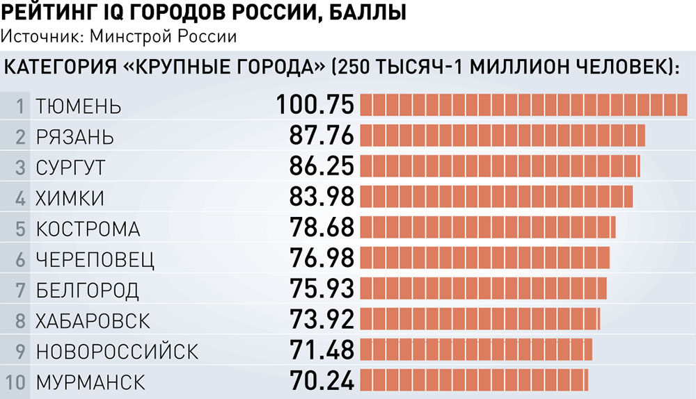 Что касается рейтинга российских городов, то уровень их "интеллекта" оценивался по 47 показателям, разделенным на 10 направлений. Это городское управление, "умное" ЖКХ, инновации для городской среды, "умный" городской транспорт, интеллектуальные системы общественной и экологической безопасности, туризм и сервис, интеллектуальные системы социальных услуг, экономическое состояние и инвестклимат, а также инфраструктура сетей связи.