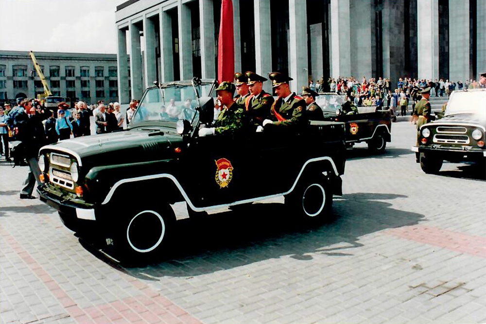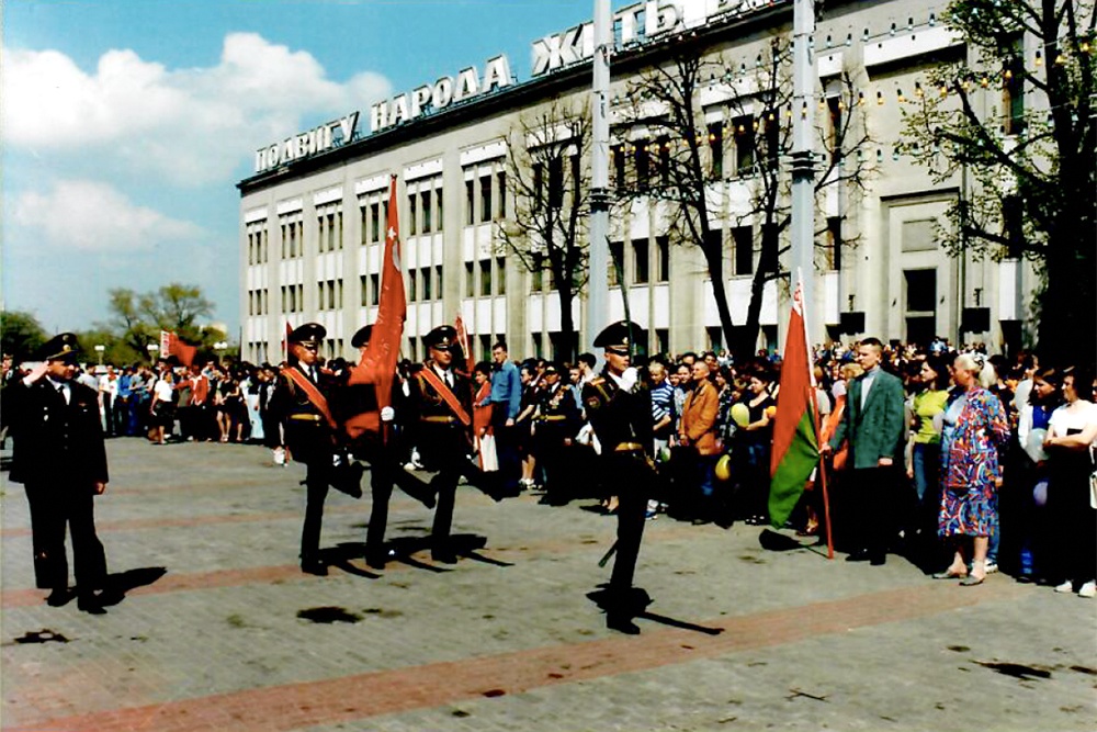 Признаться, когда кортеж остановился на Октябрьской площади Минска и Военный оркестр исполнил "Встречный марш", я позволил себе вольность. Люди просили, ветераны - и я, вопреки правилам музейной сохранности реликвий, отдал приказ: впервые за половину столетия прямо на улице расчехлить Знамя. Я был убежден, и убежден до сих пор, что Беларусь заслужила принять победоносное Знамя, и что такое событие вряд ли повторится в истории.