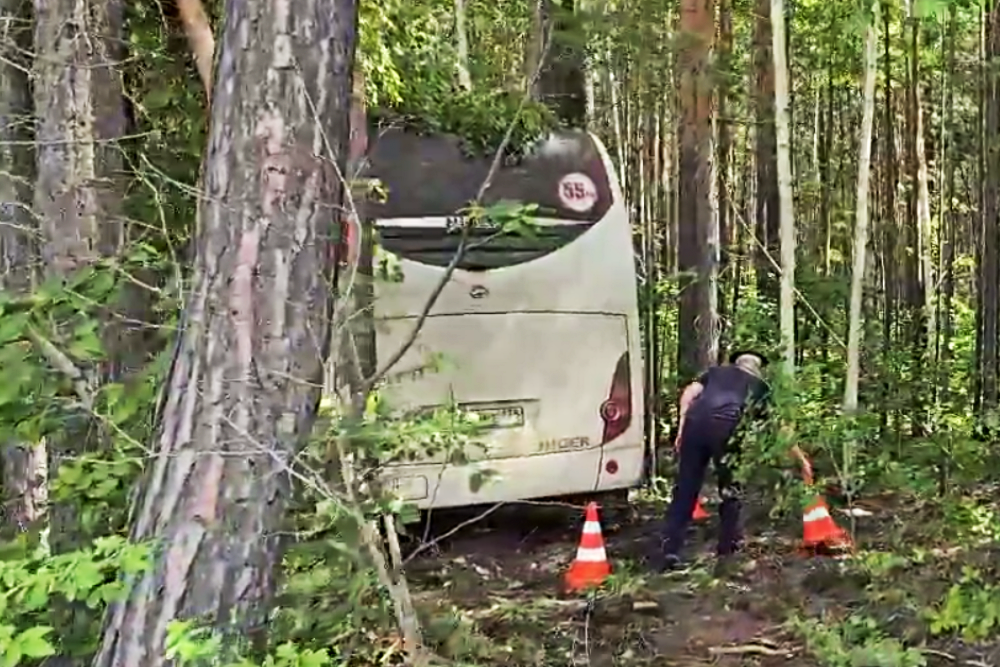 Инцидент произошел сегодня на федеральной автодороге "Вилюй" недалеко от кафе "Фараон". После столкновения пассажирского автобуса № 55А и УАЗ "Патриот" внедорожник опрокинулся, а рейсовое транспортное средство с 30 пассажирами въехало в лес.