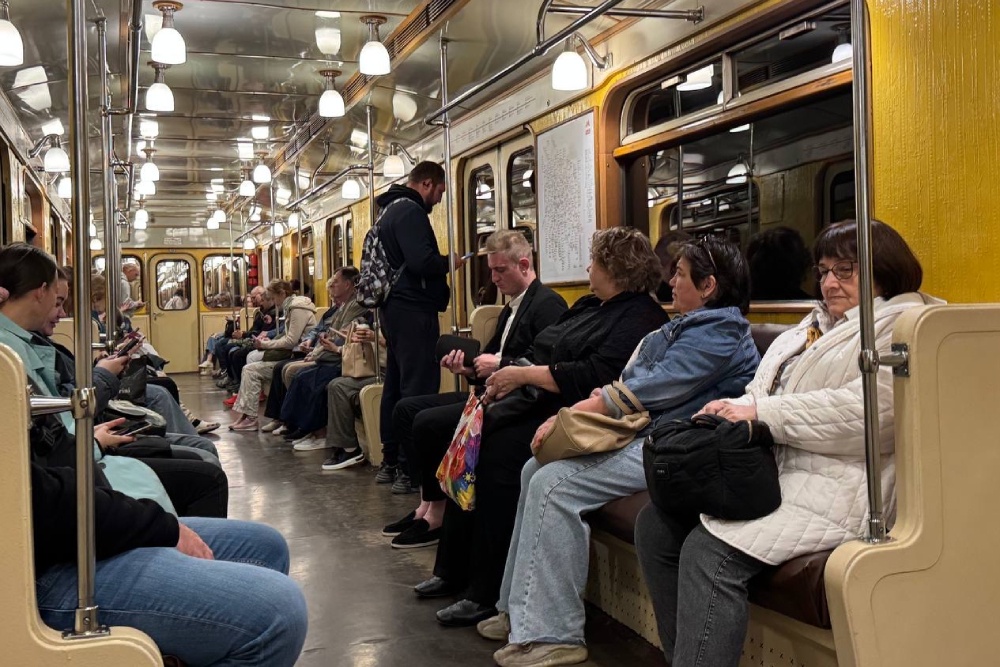 Вот на станцию "Комсомольская" Кольцевой линии, по которой ходят сегодня ретропоезда, пришел поезд "Сокольники" - копия самого первого состава метрополитена. Он вышел в путь 15 мая 1935 года, в день открытия самого первого участка подземки. После современных поездов "Москва-2024", которые сейчас ходят по столице, интересно увидеть вагоны, отделанные внутри линкрустом - материалом, который использовался в отделке в старых поездах, освещение с помощью бра…