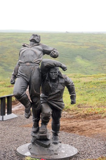 Ключевым результатом в работе по увековечению памяти Курильской десантной операции стало открытие первого этапа мемориального комплекса на горе Северной. Здесь установили четырехметровый бронзовый монумент Героев Советского Союза Николая Вилкова и Петра Ильичева - морских пехотинцев, которые закрыли своими телами вражеские амбразуры.