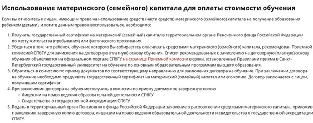 Для учебы в СПбГУ можно использоваться материнский капитал.