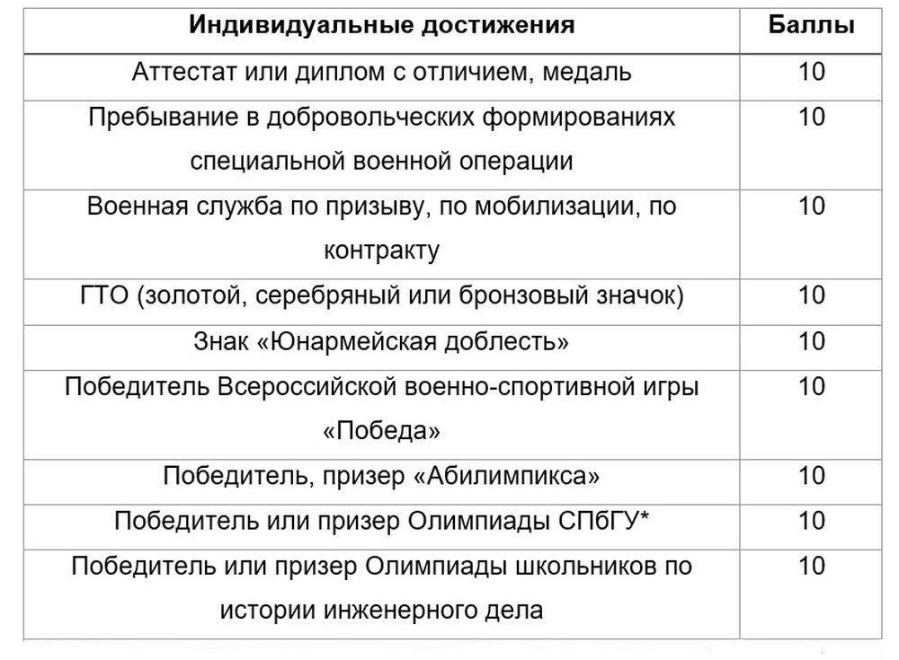 За какие индивидуальные достижения СПбГУ прибавит баллы: