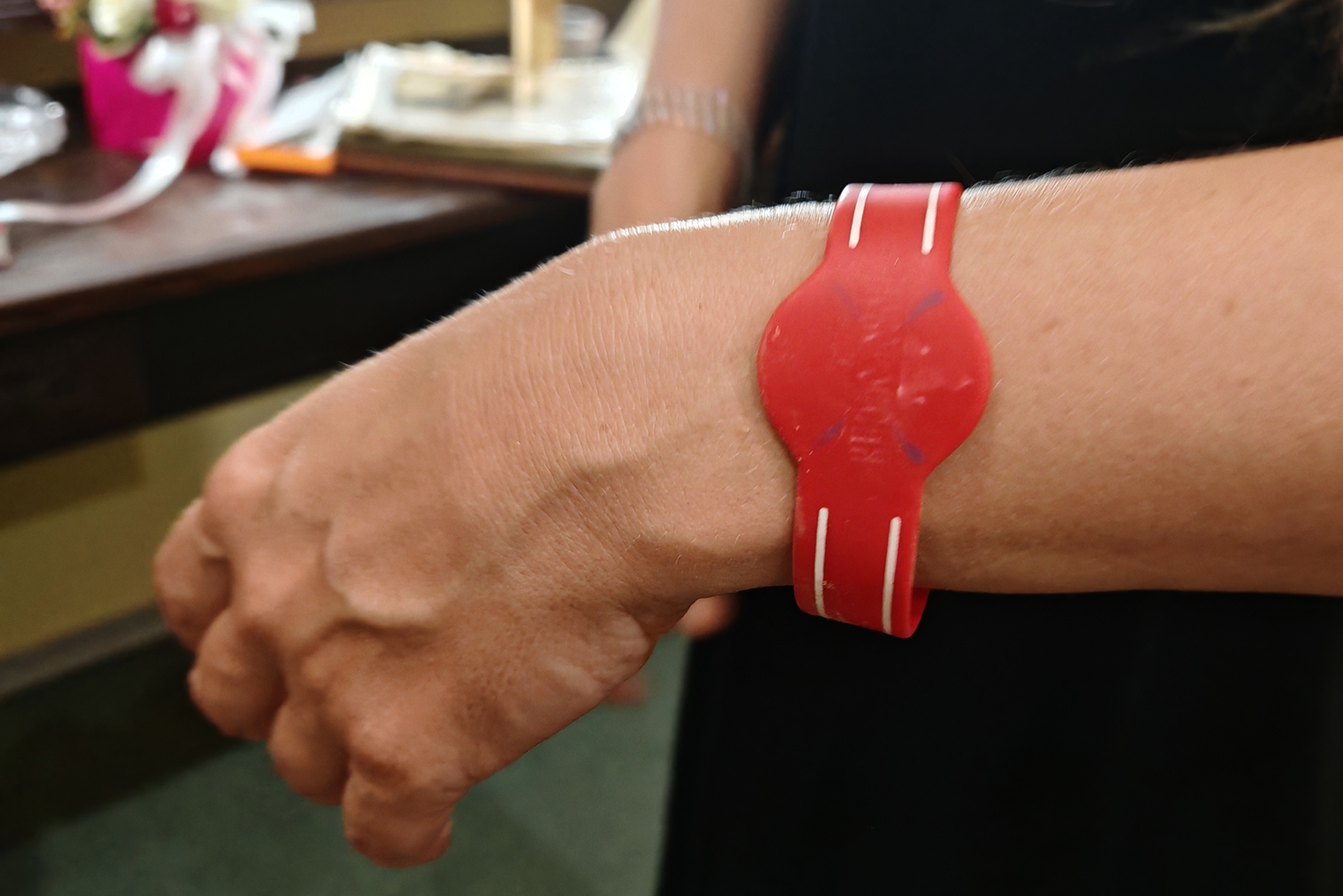 Валентина Лисица: Я верила в это. Во время той первой поездки мне подарили простенький силиконовый браслетик с надписью "Новороссия". И я решила, что буду носить его, до тех пор, пока Донбасс не войдет в состав России. Кстати, браслет этот и сейчас со мной. Вот он. Выцвел, конечно, но надпись разобрать можно.