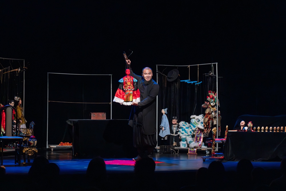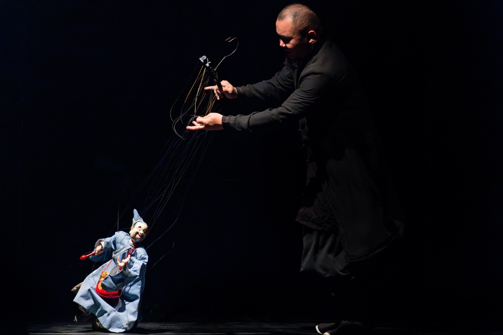 Кукол, кстати, в спектакле более двадцати, причем самого разного типа - марионетки, перчаточные, тростевые, теневые… Иногда казалось, что исполнитель Хун Цзиндяо вот-вот запутается в многочисленных нитях, но - этот спектакль был и о нем самом. И он - не ошибся.