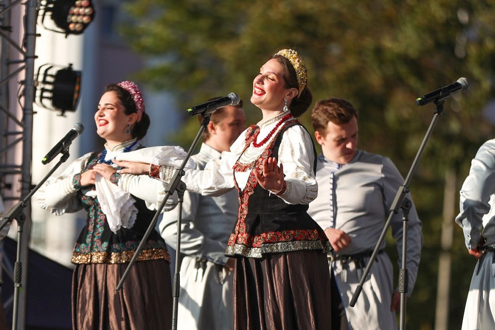 А на главной сцене началась праздничная программа. В этом году творческие номера для воронежцев вместе с минкультом региона подготовили коллективы содружества "Донбасс".