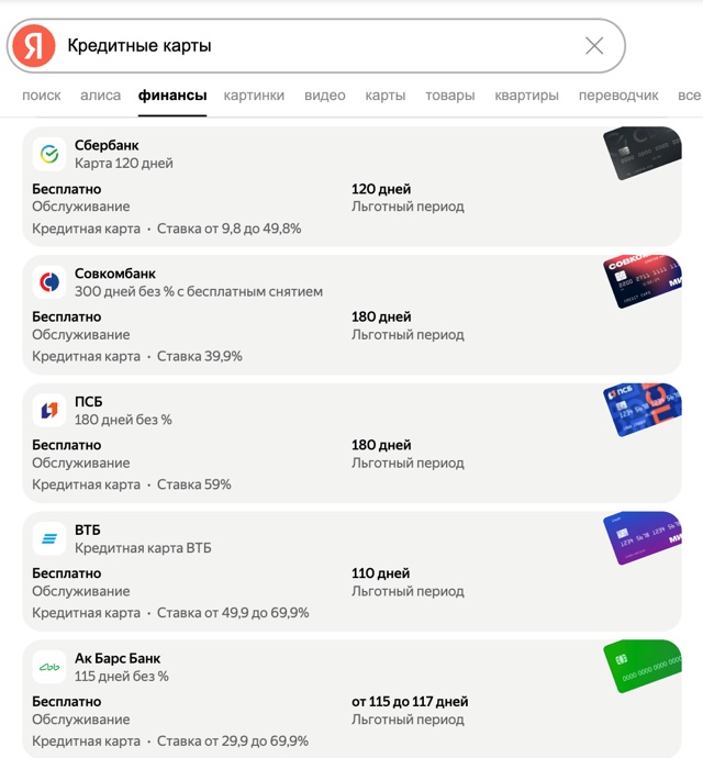 Одним из главных преимуществ кредитных карт в этой ситуации является наличие льготного периода, причем у большинства крупных банков он значительно превышает сроки в несколько месяцев. Если сравнить условия на популярных агрегаторах, льготные периоды для карт с бесплатным обслуживанием сейчас составляют от 110 до 180 дней.