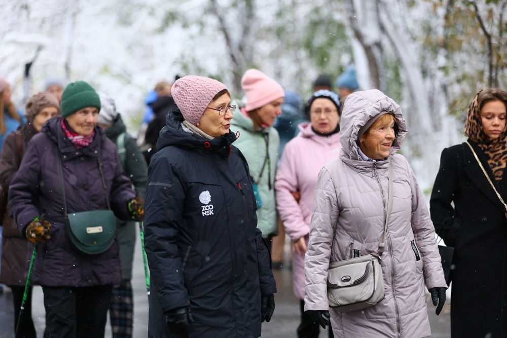 Зима неожиданно ворвалась в планы сибиряков. Вместо привычного золотого октября несколько дней шел снег. На улице с утра - прохладно и сыро. Но капризы погоды не испугали получателей услуг филиала "Городского комплексного центра социального обслуживания населения (ГКЦСОН)" Центрального округа Новосибирска и граждан пожилого возраста из Городского совета ветеранов. Для них организована интереснейшая экскурсия по павильонам и территории парка, а природа подарила необыкновенной красоты зимние пейзажи.