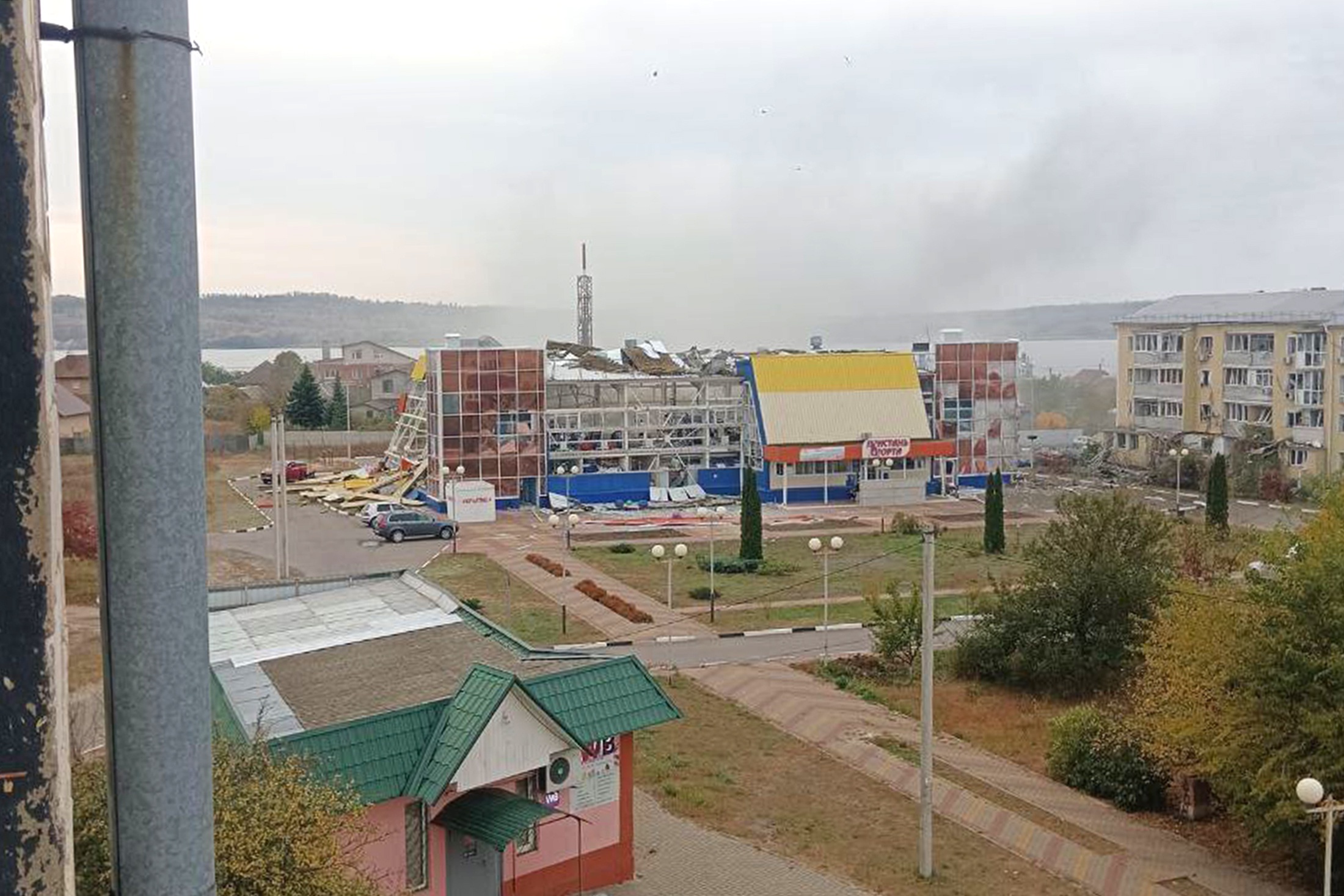 На опубликованных фото и видео можно увидеть здание, которое получило сильные повреждения. В нем частично разрушены несущие конструкции, выбиты окна, повреждена крыша.