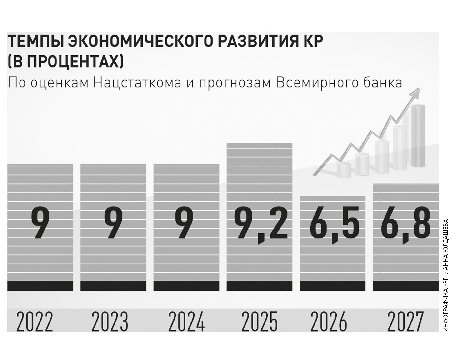 В 2026-м темпы развития Кыргызстана немного замедлятся - до 6,5 процента, но по-прежнему останутся самыми высокими в обозначенном регионе. На второе место, в свою очередь, вырвется Узбекистан (шесть). На третьем останется Грузия (5,5 процента).