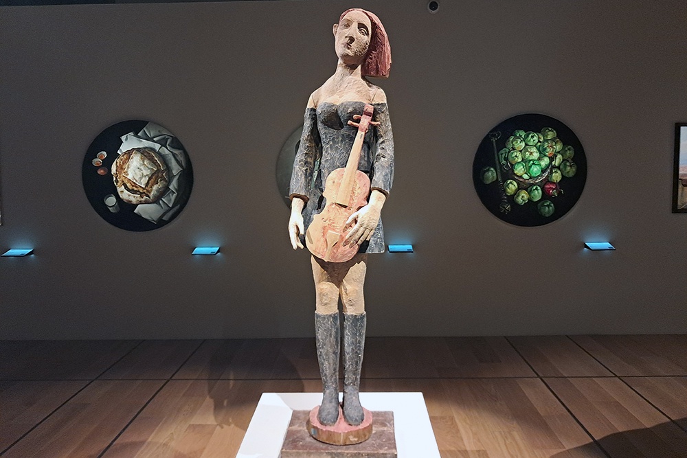 Это многоголосие эпохи модерна нынешняя выставка искусства Нижнего Новгорода использует как ролевую модель. Она предстает как встреча искусства разных времен, направлений, стилей и поколений. Разноголосие тут яркое, как посуда с хохломской росписью, что располагается полукругом, на ярмарочный манер, на двух этажах выставки.