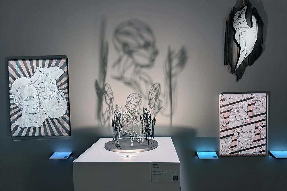 Этот утонченный эстетизм, и волжская открытость всем ветрам и веяниям, вкус к эксперименту, интеллектуальный поиск остаются и в искусстве Нижнего уже XXI века. В этом убеждает вторая часть выставки этажом выше.